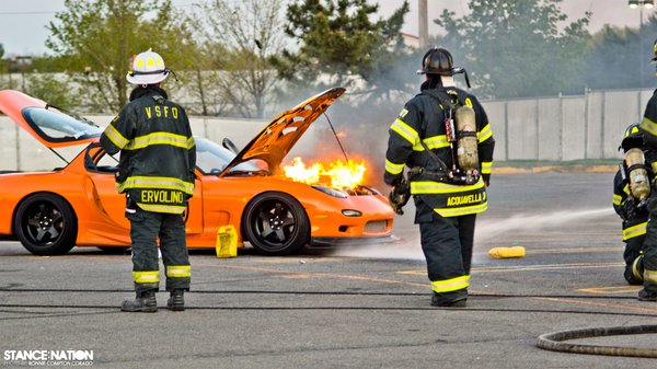 Mindez önmagában talán nem volna különleges – a világ jobbik felén tucatszám találni hasonló autókat – de egy tavaszi gumiégetős bravúroskodás során sikerült lekapni, ahogy a Mazda kupé lángra kap. A problémát állítólag a kábelezés szigetelése okozta, amely a hideg időben merevvé vált, majd a motor nagy hője hatására megolvadt. A zárlat ráadásul épp egy benzincső alatt következett be – a szemtanúk szerint így egy pillanat alatt lángolni kezdett az autó.