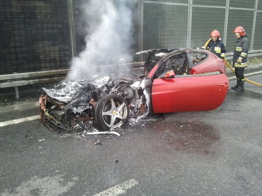 Lassan megszámolni is nehéz lesz azt a sok Ferrarit, amelyeket öngyulladás miatt vesztett el a sportautó-társadalom. Az ilyen történeteknek otthont adó helyszínének sorába lépett most be Krakkó, ahol ez az FF odalett. Ahogy azt a sofőr is megerősítette: a tűz itt is spontán indult el. Szerencsésen kihúzódott a szélső sávba, de a lángok ellen már tehetetlen volt. Az amúgy gyorsan kiért tűzoltók nem kommentálták az esetet, de az a képekről is nyilvánvaló, hogy tűz a 6,3 literes, 65 fokos V12-es felől indult.
