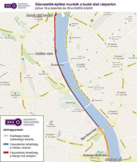 Jó hírrel kezdem. A korábban jelzett határidőre elkészült a budai alsó rakpart támfalhoz közeli, dél felé haladó sávja alatt húzódó gázvezeték felújítása. Tegnap a saját szememmel láttam, hogy a helyzet nagyon is biztató. Ha komolyan vesszük a Budapesti Közlekedési Központ (BKK) július 17-én kiadott közleményének legfontosabb állítását, vagyis, hogy a rekonstrukciós munkák július 18-tól 30-ig tartanak, el kell fogadnunk, hogy mostantól a főváros egyik legfontosabb útvonalának felét színes fémkordonokkal választják el a forgalomtól. Ez a földmunkások játszótere, a végleges állapot.