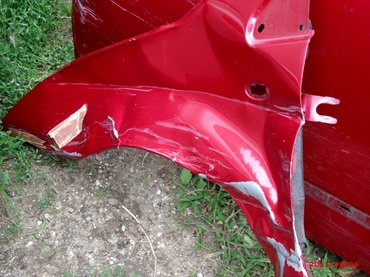 Nekiálltunk a javításnak, Lakatos Misi szétszedte, felmértük a károkat: kellett egy sárvédő, egy ajtó, sárvédő rögzítő szegecsek - mert a francia nem csavarozta a sárvédőt - és egy dísztárcsa. Semmilyen tartóelem nem sérült, csak csavarozni és szegecselni kellett. Elszaladtam a bontóba és megvettem mindent. Gyári alkatrészt, bontottan. Én mindig inkább ilyet veszek, mint utángyártottat, mert jobban fog állni a helyén, és nem rozsdásodik. Láttam már kétéves utángyártott géptetőt rohadni.