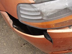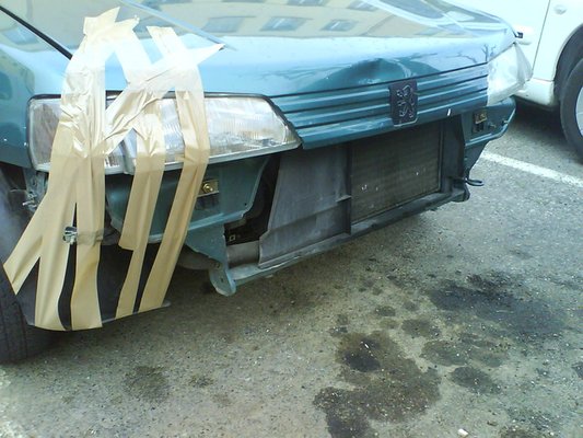 Bevittük a Fáy utcába, nemsokára jön a telefon, gazdasági totálkáros a kocsi. Mi vaaan? Jön-megy a saját lábán, világít, dudál, kanyarodik, ha nem nézem meg rendesen, semmi nem látszik rajta! Totálkáros egy olyan kocsi, amihez nem vették elő a kalapácsot, és semmilyen fém része nem sérült? Végül úgy intéztük, hogy kerítettem bele én egy klíma hűtőt, és így pont sikerült levinni a javítás árát úgy, hogy ne legyen gtk-s. A felhasznált anyagok a következők voltak: egy első lámpa (letört egy füle, amúgy hibátlan volt), hűtőrács (3 centis repedés), klímahűtő, első, hátsó lökhárító, illetve a lökhárító merevítője. A számla végösszege 734 ezer forint volt. Csak tátogtam, mint hal a szatyorban.