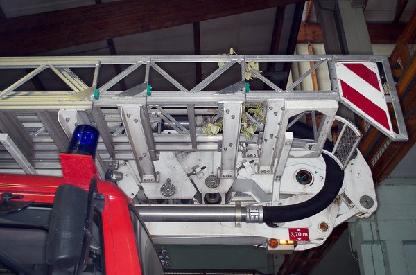 A képen látható magasból mentő eszközzel láthatóan végeztek már gallyazást. És most, hogy feldobjuk a hangulatot, tippeljék meg, hogy egy ilyen, 42 méteres üzemmagasságú, magasból mentő eszköz hány liter hidraulikaolajat tartalmaz. Az iszonyatos mennyiség persze nem a létrában, vagy a mozgatószerkezetben van, hanem az alvázban kialakított tartályokban. A segédalváz és az alváz közti részben van a szivattyú és az intercooler, mert az olajat hűteni is kell, a forgózsámoly alatt, a forgótoronyban pedig a vezérlés. Hasonló berendezések az építőiparban is szolgálnak, de természetesen megint a tűzoltók élete keményebb, de azok sokkal lassabban működnek, és persze az élettartamuk is sokkal magasabb. Ja igen: 640 liter.