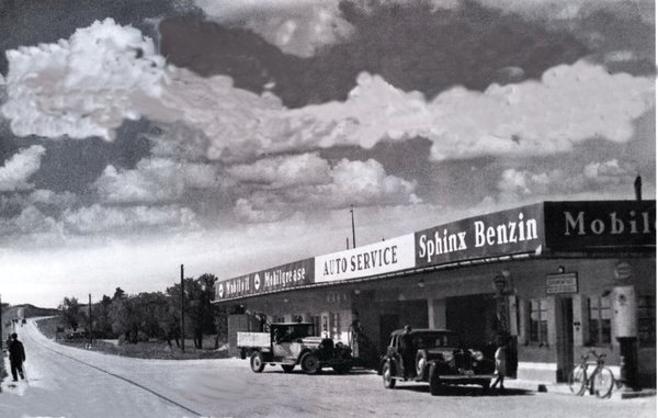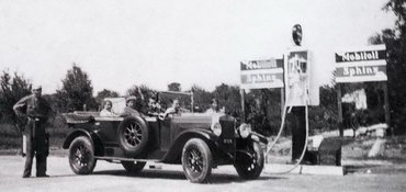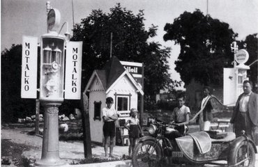 Aki ma itt vesz benzint, találkozhat egy idős úriemberrel, ha belép fizetni. Ő az a bizonyos Landthaller úr, aki a telekkönyvi bejegyzésben szerepel, s az ő édesapja – akit szintén Landthaller Taszilónak hívtak – rakta le a kút alapjait 1936-ban. Abban az évben kezdték építeni az új balatoni műutat, amelynek nyomvonala szerencsétlenül éppen a Landthaller família telkét szelte ketté. De az idősebb Landthaller felismerte a kínálkozó lehetőséget, s a telkére felvett 5000 pengőnyi jelzálog-kölcsön segítségével beszerzett és felszereltetett egy 5000 literes tartályt, valamint egy Rocco típusú kútoszlopot.