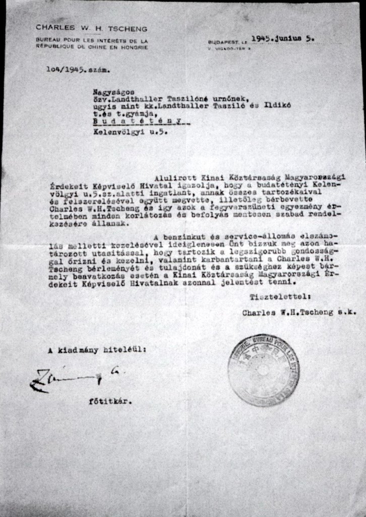Első lépésként használhatóvá alakította vissza korábban szétszedett Studebaker teherautót, amelyet orosz-magyar forgalmi engedéllyel üzemeltetett. Hogy a kút államosításának elejét vegye, az állomást papíron kiadta használatra a kínai nagykövetségnek - ennek az apjától 1941-ben kapott, hathengeres Fiat 1500 volt az ára. A négyhatalmi egyezmény szerint a kút és a terület ettől kezdve kínai fennhatóság alá tartozott, tehát a magyar állam nem tarthatott rá igényt. A helyi tanács 1945 márciusában, még a kínai affér előtt hozott ugyan egy határozatot, amelynek értelmében idősebb Landthallertől el kellett volna venni a benzinkutat, ám ő már februárban eltávozott az élők sorából, s fiára nem tudták időben kiterjeszteni a rendelkezést.