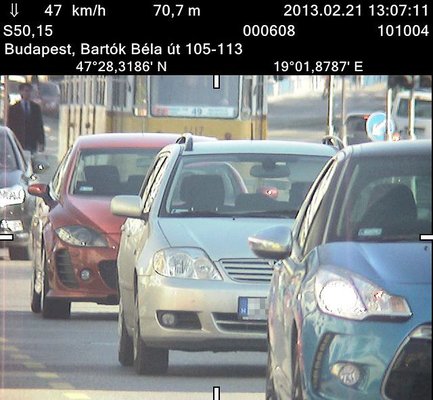 Állunk a Bartók Béla úton, a tizenöt kilométer per órás gyorshajtási határra belőtt SpeedPax 401 tucatszám készíti a fényképeket, akár a sűrűn egymás mögött haladó autókról is. Vicces, hogy amikor egy újabb autó felbukkan a kijelzőn és vezetője észrevesz minket, azonnal lassítani kezd és a kijelzőn leszalad a sebességadat, de olyankor általában már késő, hiszen kész a fénykép. Csak néhányan lépik át az útszakaszon érvényben lévő valódi sebességhatárt, például egy fehér Volvo, amely 57-tel száguld el előttünk.