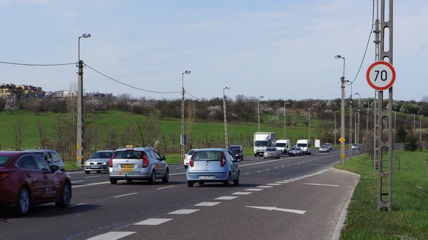 Az Egér út nagy részén, kicsit pontosabban a Balatoni úti felüljáró környékén, a Kőérberki úti kereszteződésben egészen a Péterhegyi útig ott sorakoznak a hetvenes táblák az oszlopokon. Direkt megnéztem az összes csomóponti felhajtót: minden irányból tájékoztatják az autósokat, hogy legfeljebb hetvennel mehetnek. A Tünde Opeljéről készült fényképről leolvasott GPS koordináták segítettek pontosan meghatározni hol álltak 2011 december 9-én a rendőrök. Az N47.456670 E18.992268 koordináták szerint a M1-M7 autópálya-kivezető felé tartó Tünde már elhagyta a Kőérberki úti csomópont vonalát, vagyis olyan szakaszon haladt, ahol hetven kilométer a megengedett legnagyobb sebesség, és nincs olyan körülmény, amely indokolná, hogy az autók ötvenig lassítsanak.