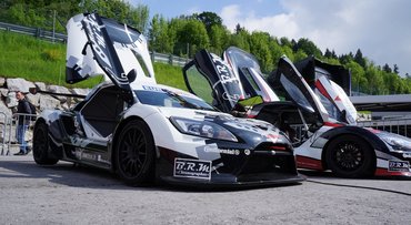 A másik a francia gyártmányú Lamera-sportkocsi, melyről eddig azt sem tudtam, hogy létezik, de mától kezdve nagy rajongója vagyok. Elsősorban azért, mert iszonyatosan könnyű, a képeken látszik, hogy csak pár, vékony laposvas a padló, a ráhegesztett bukóketrec adja az autó vázát és az egészet vékony műanyagelemekkel burkolták. A hátuljában pedig a 2,5 literes Ford turbómotor üvölt cirka négyszáz lóerővel. Nincs nyolcszáz kiló versenyzővel és versenyautószinten elég puritán a belseje is.