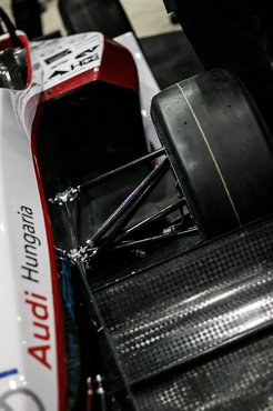 Mivel az egy futam során maximálisan felhasznált energia mennyisége 85 kilowattban korlátozva van, hiába a két, egyenként 35 kW teljesítményű motor, (túlterhelve akár 65-65 kilowattot is tudnak, együtt 130-at), a kocsi teljesítményét máshogy kell növelni. Súlyt kell csökkenteni. Ez pedig egy bizonyos szint után már nagyon nehéz, összetett és költséges feladat. A korábbi versenyautók csővázasak voltak, mostanra ebből az acélpókhálóból már csak annyi maradt, amennyi a hajtáslánc és a hátsó futómű körül látható. Ez azt is jelenti, hogy ha kell, elektromos, ha kell, benzinmotoros hajtásláncot is felcsavarozhatnak.