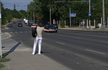 Piliscsaba után, a Pázmáneumnál váltam el alkalmi sofőrömtől. Húsz percem volt a következő buszig. Ezalatt összejön egy újabb fuvar – gondoltam, de még ki sem álltam, amikor egy huszonéves nő emelte stophoz a kezét előttem. Nem tudom, mi ilyenkor az illem, de semmiképp sem akarnék bunkónak tűnni, ezért nem állok ki mellé konkurensnek. Utólag már bánom, hogy nem kértem meg, egyesítsük az erőinket, de ez az alkalom arra tökéletes volt, hogy a padon ülve megfigyeljem, ő hogyan csinálja. Azt gondolom, nőként amúgy egyszerűbb fuvart szerezni, hiszen egy nőnek – érthető okokból – valószínű mindkét nem sofőrjei szívesebben megállnak.