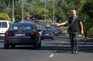 Tézisem úgy tűnik, nem állja meg a helyét, legalábbis itt és most nem él. Míg nekem hat autót kellett várnom a fuvarhoz, addig ennek az átlagos megjelenésű hölgynek negyedórás kitartó stoppolás és minimum százötven autó sem volt elég a sikerhez. A két helyszín kb. ugyanolyan adottságokkal bír – ebből látszik, hogy szerencse is kell ehhez, hiszen nem minden hatodik autós volt egyszer maga is stoppos. Végül egy idős úr áll meg egy Yarisszal. Amíg mosolyokkal teli társalgásukat figyelem, a távolban már feltűnik a buszom. Jó buli a stoppolás, de ha nem muszáj, most nem várnék tovább, így elmegyek azzal. A buszajtóban állva, izzadt hónaljak közt a kapaszkodót markolva visszavágytam a Sprinter olajos, de tágas és puha ülésére, ahol szól a Republic, hűsít a kílma és jó a táraság.