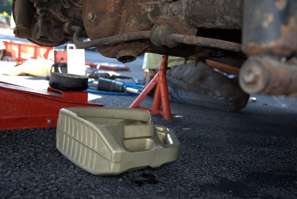 Alkatrészkupacunkat néhány liter váltóba és sperrdiffibe való olajjal tettük teljessé, mivel az évek óta álló hajtáslánc üzemmelegen meglehetősen éles hangon kezdett énekelni. Bár Karotta megnyugtatott, hogy ez a Hacsinál teljesen normális, azért nem tűnt rossz ötletnek, ha az állásban nyilván korrodálódott felületekről lemosott koszt leengedjük az első olajtöltettel. Mellesleg sikerült a gyári speckóknak maradéktalanul megfelelő olajat szereznünk, úgyhogy muszáj volt ezt betölteni.