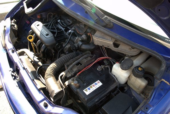 Nem voltak illúzióink, az ilyesmit jó elhagyni mindjárt az elején. A váci Twingo külsőre egész pofás volt, nagyjából egyszínű, az orra volt már törve, de még valamikor fiatalkorában lehetett, és látszik, hogy nem fakezűek rakták helyre a zárhidat sőt. Olyan apró műanyag takarólemezek (hűtő tetején pl.) is a helyükön voltak, amit a faluvégen nem pótolnak, csak a márkaszervizben. Motortérburkolat is akad, ez sem jellemző a törött autókra. A tornyokon gyári fény, nem lehetett nagy ütés, a légzsákok is a helyükön, szemlátomást az eredeti kormánnyal- és légzsákburkolatokkal.