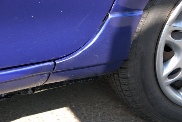 Aztán megláttuk. Nem részletezném, talán csak annyit, hogy a tulajdonos arra a kérdésre, hogy Olajcseréd mikor volt?, nem tudott érdemben válaszolni. A sárvédő-küszöb közötti üregben áll a sár, az autó bele koszos, rendetlen, a hátsó ajtó nettó rohad, a kalaptartó romokban, a kuplung az utolsó fél centin fog, a féktárcsának szélesebb válla volt, mint Johnny Bravónak, letört és nem működő ülésállító karok, satöbbi.