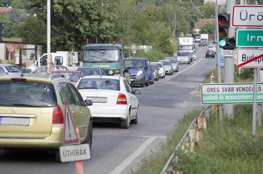 Elég egy lekanyarodásra várakozó autó, máris tíz méterekkel nő a kocsisor a 10-es főút ürömi kereszteződésénél, ahol a lámpák előtt minden hétköznap több ezer autós vesztegel. A sor vége a 10-esen nem ritkán a három kilométerre levő Auchan áruház előtt áll, és ma már az Ürömi úton is rendszeresek a száz méteres torlódások. A helyiek és az ingázók azt mondják, a szakaszon évek óta tarthatatlan állapotok vannak; sok ígéretet kaptak már, mégsem történt változás. Tervek most is vannak, de a helyzet még legalább egy évig nem változik.