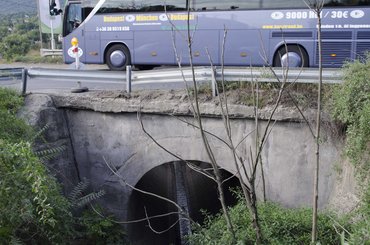 Ferde hirdetőtáblák, poros murva, itt-ott megnyomorgatott szalagkorlát szegélyezi az utat. A korláton túli gazban töméntelen építési hulladék, napszítta műanyag flakon, zacskó és cigicsikk, de dísztárcsából sincs kevés. A dugó mellett ez a balkáni hangulat lehet az oka, hogy az ürömi kereszteződésben a szélvédők mögött nem sok az életkedv. Buda felől tábla figyelmeztet az úthibákra. Ez a széttaposott, foltozott útra utal gödrökkel, sokcentis nyomvályúkkal, olyan útra, ami úgy hullámzik, hogy gyalog majdnem elhasaltunk rajta. Az aszfalt állapota katasztrofális a lámpától egészen a 150 méterrel odébb lévő OMV benzinkútig, ám mivel itt a forgalom jelentős része araszolva halad, ez jelenleg a kisebb probléma.
