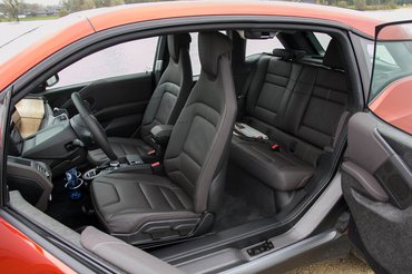 A közel négy méter hosszú i3 belül egészen kicsi, de a BMW egy percig sem állítja, hogy ez a kocsi kiváltja majd a megszokott családi autót. Munkába járásra tervezték, egy-két főt szállít. Esetleg négyet, de azt már csak az ebédszünetben. Elöl szépen el lehet helyezkedni, de hátulra már beszállni sem egyszerű. Ha nem terveztek volna rá kétfelé nyíló ajtókat, hátulra talán be sem lehetne szállni. Így csak kikászálódni nehéz. Ha viszont elöl ül valaki, majdnem lehetetlen a kijutás, ugyanis a szekrényajtók csak egyféle sorrendben nyithatók. Lenevel a közös autózásról.