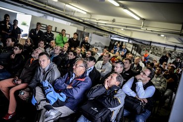 A driftről tartott eligazítás nagyszerű volt. Nem is csak azért, mert megpróbálták egész ügyesen összefoglalni elméletben, hogy mi a teendő annak érdekében, hogy hosszan faroljunk egy drága autóval (ami pedig gyerekes és felelőtlen dolog), hanem önmagában azért, mert volt ilyen program. A Porsche ezzel azt mondja, hogy igenis rendes, kemény, sportszerű és játékszerű használatra készíti az autóit, és nem bánja, ha ezt el is mondjuk másnak.