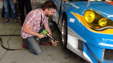A következő menetben légkulcsos kerékcserét végzünk, időre, Le Mans módra. Mint megtudjuk, mi csak az egymilliós alap-légkulcsot kapjuk meg, mert a 8000 eurós, azaz közel 2,5 millióst nem bízzák ránk, de valószínűleg nem is tudnánk megtartani, olyan nyomatékkal indul meg. Le Mansban héliummal tuningolják, ha bárkinek van ötlete, hogy mi a fészkes fenének, írja meg.
