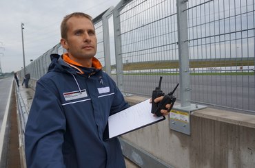 A start előtt még tartunk egy hosszas stratégiai tanácskozást Marco Seefried, csapatvezetőnk és instruktorunk, mellesleg többszörös Nürburgring 24h kategóriagyőztes irányításával. A tanácsára megjelöljük az autónkon a jó emelési pontot szigszalaggal, elpróbáljuk a sofőrcserét, és kitaláljuk a sorrendet. A gyorsak vezetnek először, hogy ha bármiért idő előtt véget érne a verseny, a lehető legtöbb megtett körünk legyen.