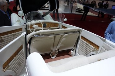 Egy kis Duesenberg itt, Bogár amott, majd a Lamparttól Lamborghiniig terjedő ív hátán a kocsi orrához csusszanunk. Nos, mi hiányzik még a képletből? Úgy bizony, a Bugatti. És hogy a legkönnyebb Bugattit fabrikálni? Patkó alakú maszkkal. Ki gondolta úgy, hogy Sbarróék kihagyják ezt a ziccert? Leülhetsz fiam, egyes. De legalább értékeld a kutyust, milyen szépen szökken, egy kicsit szarvasabb lenne, már Volgának nézném.