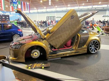 A Tuning World Bodensee egyik attrakciója volt az Audi, és ott igazán kevés dolog akad, amin igazán meglepődne a közönség, de még abban a mezőnyben is elég meredek lehetett a Vuitton-utánzat TT – különösen azzal a kapcsolattal, amit a küszöb felirata jelez. Az autócsoda ugyanis egy pornóoldal pénzéből épült, amit a küszöb felirata jelez.
