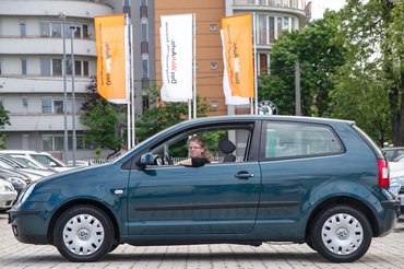 Kézenfekvőnek tűnt egy kisautóval kezdeni, hiszen a kezelőszervek ebben talán jobban kézre esnek. Részben bejött az elképzelés, mert Zsófi mind a két pedált ütközésig ki tudta nyomni - kifogtuk a város egyetlen automata Polóját -, a kormány már túl közel volt. Az ülőlap még a legmagasabb helyzetbe állítva is alacsony, a szélvédő alsó vonalán már csak fészkelődve látott át, és hátrafelé sem volt jobb a helyzet. A Polo tehát csalódást okozott, viszont ez volt az egyik, amiben nem kellett teljesen előrehúzni az ülést.