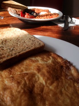 Ó, igen, a reggeli. Sosem fogom megérteni azokat, akik nyavalyognak az igazi Full English Breakfast miatt. Zseniális, tényleg feltölt egész napra, és ha finomak a kolbászkák, jó a bacon meg a rántotta, tökéletes dolog. Oké, a főtt-hámozott paradicsom és a sült bab a magyar szemnek furcsán mutat a tányéron, de mi imádtuk. Mivel komoly mennyiségben fogy a reggeliző helyiségekben a pirítós, több helyen találkoztunk ipari toasterrel, ami egy láncos szállítószalagon továbbítja a kenyérszeleteket a fűtőelemek elé, és mindkét oldalán alaposan megpirítja őket.