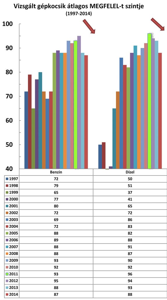 Mindenesetre Európai Uniós szinten is magas a sikeresen vizsgázó autók aránya. A tavalyi hasonló akcióban a vizsgált benzinesek nyolcvannyolc százaléka, a dízeleknek pedig kilencvenhárom százaléka felelt csak meg. Ez 2014-re a benzinesek esetében egy százalékot romlott, a dízeleknél viszont öt százalékkal több autó nem felelt meg, mint egy évvel korábban. Azokat az autókat, amelyeken valamilyen rendellenességet találtak, soron kívüli műszaki vizsgálatra küldik. Ez ingyenes, ha az autó oda már megjavítva érkezik, és bírság sem jár az ilyesmiért.