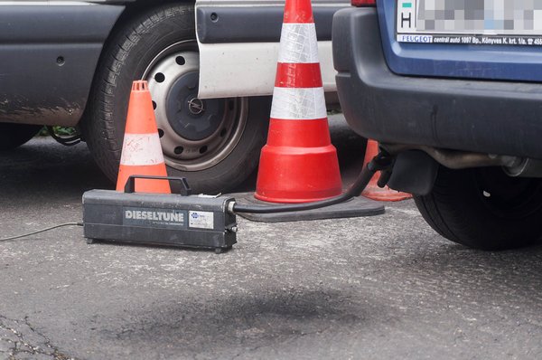 A pénteki vizsgálaton jöttek-mentek előttünk a dízel kisteherautók a budapesti Kacsóh Pongrác úton, több is látható fekete füstöt köpött az első gázadásra. A dízelmotorok egy része csak azért füstöl ilyenkor a kelleténél jobban, mert városban kis gázzal használják, ezért lerakódik a korom a kipufogórendszerükben. Ezen a jelenségen már a rendszeres autópályás körök is segíthetnek egy kicsit, illetve az, hogy a mérések előtt ezt néhány erőteljes gázadással szüntették meg. Ezért nem lepett meg senkit, hogy az útmenti vizsgálat végén koromfoltok jelezték az aszfalton a megmért autók nyomát.