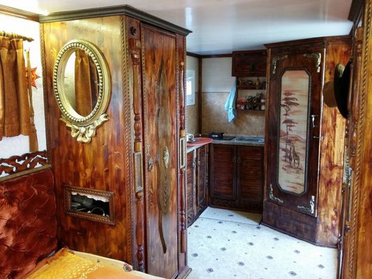 Új szintre emelete a mobil otthonokról alkotott képünket ez a fekete Kamaz. A nomád világjárókról élő összes előítélet oda, amikor az ember végigpörgeti az erről készült fotókat. A hat keréken álló otthont egy orosz színész és barátja lakják, az ő munkájuk eredménye a garázzsal ellátott, míves fabútorokkal berendezett kamion.