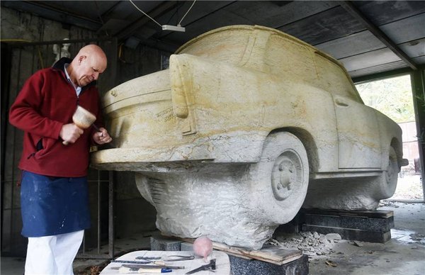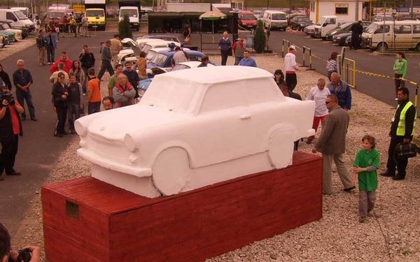 Műanyag helyett homokkőből készült a berlini Carlo Wloch szobrász Trabantja. 17 évig dolgozott a 13 tonnás szobron, amely most, a berlini fal lebontásának negyedszázados évfordulójára készült el. Carlo hatezer órát dolgozott az autón, miközben civil foglalkozása is a kövekhez köti: sírköveket készít, de részt vesz a Berliner Schloss felújításában is. Furcsa hobbijáról persze mindenki tud, pankowi szomszédai "Guten Tag" helyett már "Wie geht's dem Trabi?"-val (Hogy áll a Trabi?) köszönnek neki.
