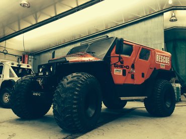 Ezt az autót is megjárathattuk, sőt oltottunk is vele, de nem ezért jöttünk, hanem a sokkal bikább Rescue-ért. A 3,2 tonnás, több mint öt méter hosszú és majdnem 3 méter széles szörny ugyanoda eljut, ahova a Fire Fighter, de a tartálya már 620 literes, és akár 16 embert is lehozhat a hegyről. A jármű egy 65 cm magas falon is átmászik, az eleve hatalmas (130 cm átmérőjű) kerekekre plusz ballonokat illesztve pedig a vízen gyakorlatilag úszik. A prototípust 9 hónap alatt rakták össze, a projekt költségvetése egymillió euró fölött jár.