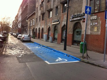 A hasonló, morálisan kissé ingoványos gyakorlat nem egyedülálló a helyi felügyeletnél, hisz szerkesztőségünk előtt is a BKK-nak kellett újrafestenie azt a mozgássérülteknek fenntartott parkolót. (Itt ugye az volt a probléma, hogy hiába hagytak ki két autónyit a jó szándékú autósok, a mozgássérülteknek dupla hely kéne, így gyakorlatilag négy autónyi helyen bárki büntethető volt.) Itt sem akaródzott javaslatot tenni a felfestésre, elég volt a tábla a büntetéshez. Hát az ilyen dolgok teszik, hogy is mondjam, az óbudai közteresek munkáját nehezen szerethetővé.
