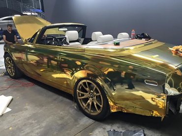 Steve Goldfield csapata például a híres West Coast Customshoz tolta be Rolls Royce Phantom Drophead Coupéját, hogy megrendeljenek egy teljes polír-arany fóliát a gépre. Az összkép majdnem hibátlan, csak a Gumball 3000 logók törik meg valamelyest a tökéletes csillogást. És hogy a mértéktelen hivalkodás tökéletes legyen, felnikből is aranyszínűeket használtak. Így valószínűleg ez a Rolls lesz a Gumball legfényesebb fuksza, amelyet utána viszonylag egyszerű lesz visszaalakíttatni eredeti, jóval visszafogottabb formájába.