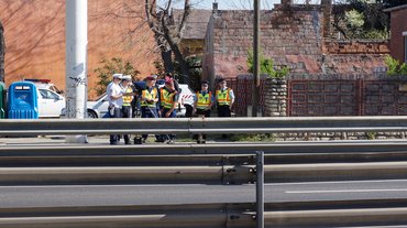 A Gyömrői úti ellenőrzésen reggel nyolctól fél tizenegyig tíz autót állítottak meg, az egyik rendőr kezében tartott, indigós jegyzőkönyvbe, a települési naplóba rögzítette a gyorshajtó autók adatait, amikor a szél nem cibálta ki a kezéből a papírt.