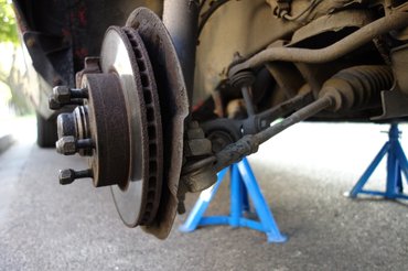A gömbcsukló kúposan illeszkedik a tengelycsonk kis karjába, ezért nem is esik ki, ha esetleg lecsavarodik róla az anya. Bombabiztos. Csak szétszedni nem öröm, pláne, ha az embernek nincs gömbcsuklóprése. Ilyenkor az a menet, hogy a kis kar egyik felére, a gömbcsukló nyaka melletti részhez odateszel egy nagy, nehéz kalapácsot, a másik irányból pedig irdatlan ütést mérsz egy még nagyobbal rá. Csakhogy itt útban volt a fékalaplap, azt se jó szétverni, ráadásul sehogy nem tudtam elég nagy sallert lekeverni neki.