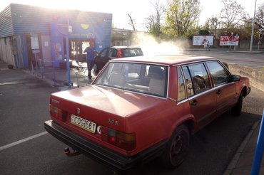 Amikor kész voltam, elrohantam az Imo mosóba, mert kultúrországba nem megyek balkáni kosszal az autón, nem akarom rossz hírünket kelteni, elég szakadt szegény Volvo így is, de ha tiszta, akkor lehet, hogy buliautónak nézik. Mert voltaképpen... az is.