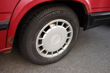 Ennek ellenére kaptam egy srácot, Tamást, akivel nagy nehezen kitaláltuk mi legyen. A Ferenctől kapott alufelnik gumijai menthetetlenek voltak, amilyen jó volt a szándék, annyira elvásott a kaucsuk. Ezért felment két használt gumi (nem pont az a méret, ami az első, de még belefér a tűrésbe) hátra, a hátsó felnik kompletten előre mentek, majd állhattam be a futóműves állásra. Egész jól sikerült a felrakás, csak keveset kellett állítani, de most, hogy Gyuri már rendesen mérni tudott, kiderült, hogy picivel hátrébb van a jobb oldali futómű, nem sokkal, de 31 év az 31 év és mindig a jobb egy kapja a legnagyobb pofonokat.