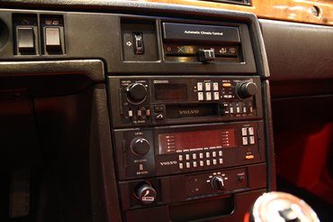Per-Ake Fröberg, a Volvo Heritage főnöke hosszan sorolja nekünk, mi mindent kellett egyedileg elkészíteni a legendás igazgató születésnapi autójához, hogy az még az alig egy hónappal korábban bemutatott, összesen csak 8500 példányban elkészült kupék közt is kivételes legyen. Sem ilyen harsány színárnyalat, sem hozzá passzoló, szintén élénkpiros bőrkárpit nem volt jellemző a márkára, ezért ezeket egyedileg gyártották le, hiszen az ünnepelt igazgató imádta a piros autókat. Ez még rutinfeladatnak tűnhet, de az utastér egyes műanyag burkolati elemei is pirosak. Őrület. Nem minden burkolat kapta meg az autó színét, de az ülés környéki műanyagok, a küszöb- és ajtóborítás olyan harsány és vidám, hogy hasonlót sem látni más autóban. Gyllenhammar 780 kupéját minden extrával felszerelték, amit akkoriban rendelni lehetett, de a kedvencem a digitális hangszínszabályzóval ellátott audiorendszer, amely igazi játékszer lehet útközben és annyira nyolcvanas évek, mint a Roxette.