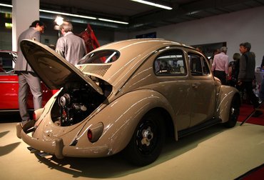 Az osztrák Kurt C. Volkhart akkor úgy gondolta, érdemes lenne elkészíteni a KdF-Wagen nagyobb sebességre képes, gazdagabb kivitelű változatát, s a Sagittával igazi sorozatgyártást tervezett. Az, hogy a szenzációs, 0,219-es alaktényezőjű autó elterjedését eltüsszentette a francba a világháború végkifejlete, semmit nem von le az értékéből. Pedig az elég magas lehet, ismerve a VW-fanatikusok pénzköltési szokásait – azt sajnos nem tudom, hogy elkelt-e a kiállításon. Mindenesetre működni működik, mert amikor a szalon bezárása után Zách Danival még másfél órát álldogáltunk a felüljárón, figyelve a távozó autókat, a Sagitta is ott dörmögött tova a lábunk alatt.