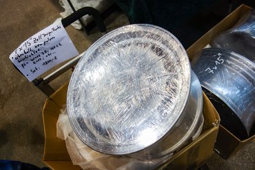 Viccesek az alkatrészárak is. Találok a földön Folpackba csomagolt cápafogas (Schmuck) Mercedes-alufelniket is, számomra minden idők legpuruttyább és legáltalánosabb Merci-kerekét, én konkrétan a MÉH-be vittem egy garnitúrát nem is túl rég. Ma? 1800 euró a szett – nem új, csak felújított. Egy fehér kormányközép a W108/115/Pagoda szériára (tenyérnyi korong, műanyag csillaggal a közepében) 220 euróba kerül, kérdés, ki viszi haza, Ja, hogy kormánnyal együtt ugyanez a szett 400? Valaki meg fogja venni, mert a szép ma már ritkaság az ilyenből.