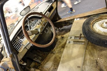 A Citroën DS is idén ünnepli a 60. évét, borzalmas csinnadrattát csaptak körülötte, térdig gázolunk az istennőben. A sok csillogó autó között természetesen a leglepukkadtabb a legfeltűnőbb: egy totál szétrohadt DS, kaszni nélkül, padlója a szőnyegre omolva, csomagterét rozsdapókháló tartja helyben, eleje mint a Titanic, persze a 2015-ös állapotában. És innen még visszahozzák, mert a DS ára rettentően megugrott az utóbbi időben. Mint szinte minden másé is, vajon mikor pukkad ki a lufi?