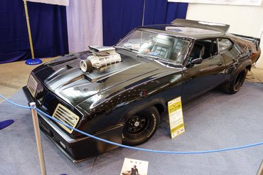 Vissza a versenyautós csarnokba, amíg bírom lábbal, nini, itt van Mel Gibson kocsija a Mad Maxből, az a Ford Falcon XB/GT, ami ezzel a ferde orral sosem volt, csak a film kedvéért, egyetlen példányban. Nem hinném, hogy az eredeti Ausztrália helyett épp Ausztriában talált volna végső otthonra, inkább azt gyanítom, már ebből is készítenek replikát, igen, a sógorék is, az egy szótaggal rövidebb helyen. A végeredmény meggyőző.
