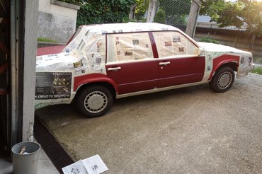 No meg, felvinni, az sem leányálom. Van vékony alumínium spaklim és van kicsit vastagabb, de rugalmas, műanyag német spaklim. Általában utóbbi válik be jobban (most is így lett), a kocsi jobb oldalával viszonylag hamar végeztem, gyorsan lehúztam a motorházfedél élét is, az idő nagyon múlt. Becsületből azért megkentem a bal oldali ajtók alját is, de akkor már nagyon esteledett, a családom rég otthon volt munkából, suliból, nem húzhattam a dolgot, ráadásul még sok dolgom lett volna, esélyem se volt a fújásra. Egy nap eltelt, a garázsfeljárómon egy szörnyű roncs parkolt. Úristen, mit tettem?