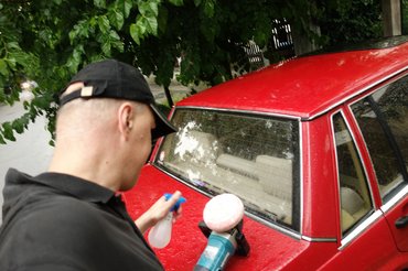Mintha darázsraj kergetett volna, megcsináltam a kocsi elejét és a bal oldali ajtókat, mert mint mondtam, jött erősen a nap. Már rajta voltak az első sugarak a fényszórókon, amikor beizzítottam a Makitát, őrült tempóban spricceltem a vizet, már húztam is a gépet. Ahogy kész voltam, mentem neki az ajtók aljának, meglepő, de egészen simának tűnt a felület. Hasonló brutál tempóban estem neki a tetőnek, de itt már remegett a kezem, hiába, nem vagyok edzésben. A kemény vízpapírozás, a spricni rángatása vagy ezerszer, a víz ki-be hordása (aztán inkább kihoztam a slagot), a nehéz gép kordában tartása nem ványadt irodista izmoknak való. De a lényeget végigpolíroztam délelőtt tízre, ami onnan maradt, az már soká' árnyékban lakott.