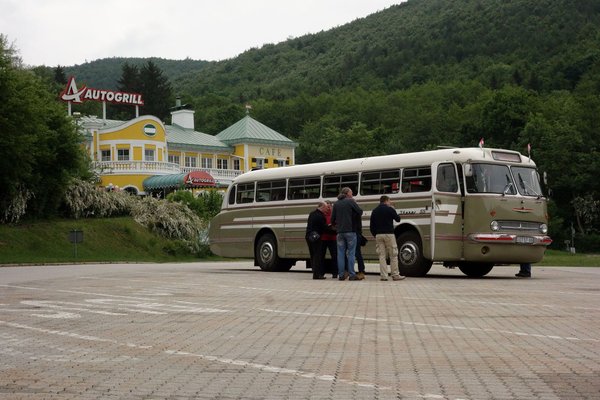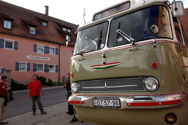 Kicsit féltem azért az úttól. 750 kilométer egy modern, légkondicionált, dönthető szövetüléses, légrugós buszban sem kellemes ilyenkor nyár táján, hát még egy laprugós, a hátsó kerekeiben áttételmódosító (és hangosan sivító) bolygóművet hordó, alacsony és fix támlás, a szélén műbőr üléses, lassú veteránban. Imádom a farost, mérhetetlenül büszke vagyok rá, hogy a mi iparunk egy ilyen csodát elő tudott állítani akkor, a vasfüggöny mögötti időkben, már attól a lehetőségtől is elájultam volna, ha egy kétszáz kilométeres túrára elvisznek vele. De azért egy nap oda 750, egy nap Ornbau, és egy nap vissza 750 kicsit húzósnak tűnt. Meggyötört, szótlan, a legkisebb súrlódásra ököllel ütni hajlamos, vörös szemű veteránosok késő éjjeli megérkezését vizionáltam. Ha a busz ugyan el nem romlik addig.