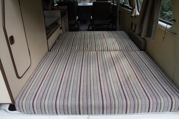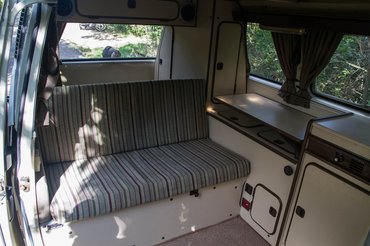 A hátsó ülés egyben ágy is, egy könnyű mozdulattal előreugrik az ülőlap, a hátlap pedig vízszintbe dől, így kialakítva egy kétszemélyes, kényelmes szivacsos fekvőhelyet, alatta tárolóval. Ezt a fajta ágy-ülést egyébként rock'n'roll-ágynak is szokás hívni. A hivatalos csomagtérbe, a matracok mellé még beszabtak egy álló szekrény, illetve a tetőbe is egy nagy zárható fiókot, amiben hangszórók is helyet kaptak.