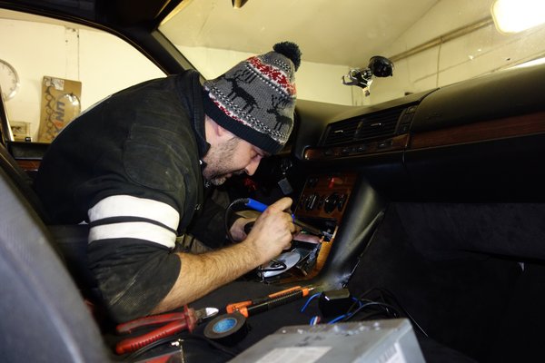 Légteleníteni nem volt könnyű, miután a rendszer megkapta a ki tudja mióta nem látott vizet, elkezdte leoldani a dzsuvát, melegíteni az évek óta száradó csöveket. Kiszereltük a kiegyenlítőt, a magasba emeltem, amennyire engedte a vízcső és elkezdődött a hosszadalmas légtelenítés. Karesz elrágott pár rúd dinamitot, de végül minden rendben volt. Járattuk a motort, a friss olajat, feltöltöttük a váltót is (előző nap csak félig, hadd legyen ideje eljutni a citromba és mindenhová, ahová kell) járó motor mellett, elpucolgattuk a műanyag alkatrészeket, pótoltam a hiányzó beltéri izzókat, beforrasztottam a csodálatos, ajándék Becker Traffic Pro csatlakozójával az eredeti antennakábelt (tudják, ahol egy ér van középen, vékony, mint a hajszál, öröm vele dolgozni), összeírtam, milyen apróságokra lesz szükség a bontóból.