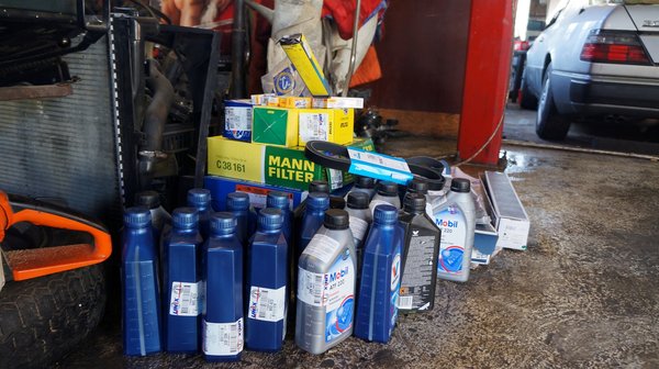 Mindez kiegészült a váltóolaj-szűrővel, olajszűrővel, légszűrővel, pollenszűrővel, hosszbordásszíjjal, gyújtógyertyákkal. Ehhez adjuk hozzá a több flakon féktisztítót, a hőálló fekete kipufogófestéket, a kenőzsírt, a négy darab H1-es és öt darab 4 wattos beltéri izzót, a csodaként talált Bosch ablaktörlőt a sofőr, és Trico-nevezetűt az utasoldalra. Még Visz előtt feltöltöttem az olaj- és váltóolaj szintet, fagyállót vettem Budapesten, így ezt is beleszámolva a 350 ezerért vásárolt 300SEL Bálna-Mercire alkatrészben 209 365 forintot költöttünk.