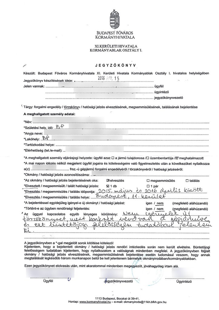 Az okmányiroda ezután kezdi kerestetni a törzskönyvet. Ez a gyakorlatban azt jelenti, hogy a Belügyminisztérium vonatkozó oldalán pár napon belül megjelenik az elveszett törzskönyv száma, amit 14 napig kerestetnek. Elvileg, amennyiben az adásvételin a törzskönyv számához, az "elveszett, bejelentve" megjegyzés van odaírva, a 14 napos kerestetés letelte előtt is át lehet íratni. Ekkor nem árt utána nézni a fent említett oldalon, hogy tényleg ott van-e, mert ha még nem, akkor az okmányirodában szinte tuti, hogy elhajtanak.